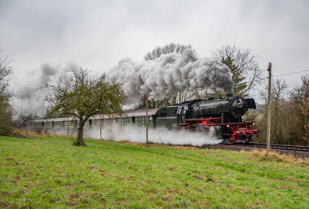 Nach der Fahrt nach Amorbach am 30.11. verblieb 23 042 im Bahnbetriebswerk Hanau, denn eine Woche später, am zweiten Adventswochenende, war sie erneut im Einsatz