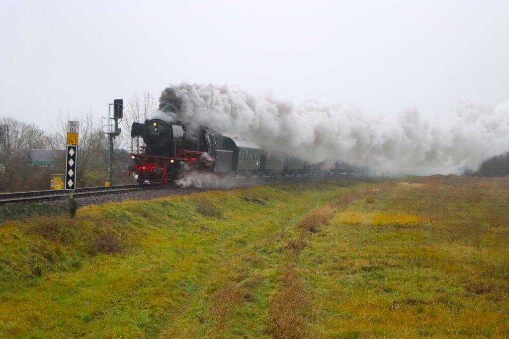 Am 30.11.2025 brachte die gemeinsame Sonderfahrt der Bahnwelt und der Museumseisenbahn Hanau mit der Dampflok 23 042 (kurzfristig unterstützt durch 212 285-1 der KonRail GmbH)