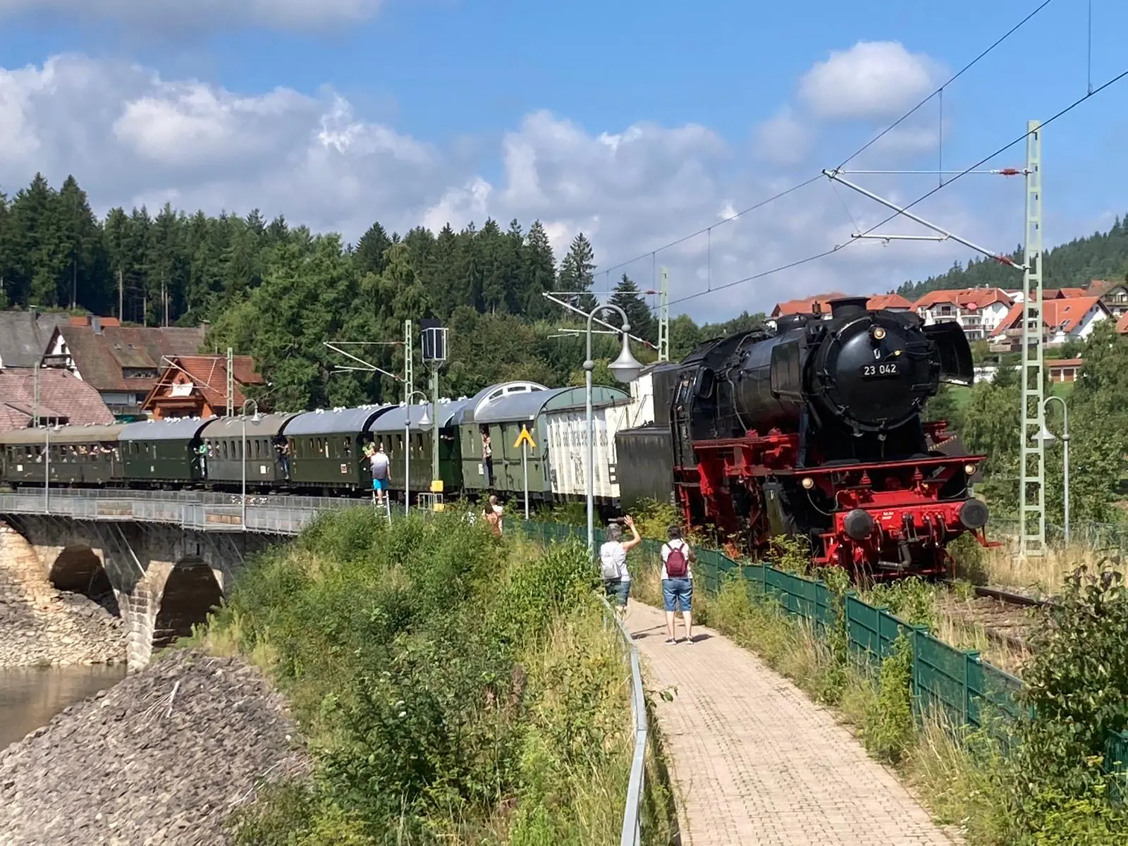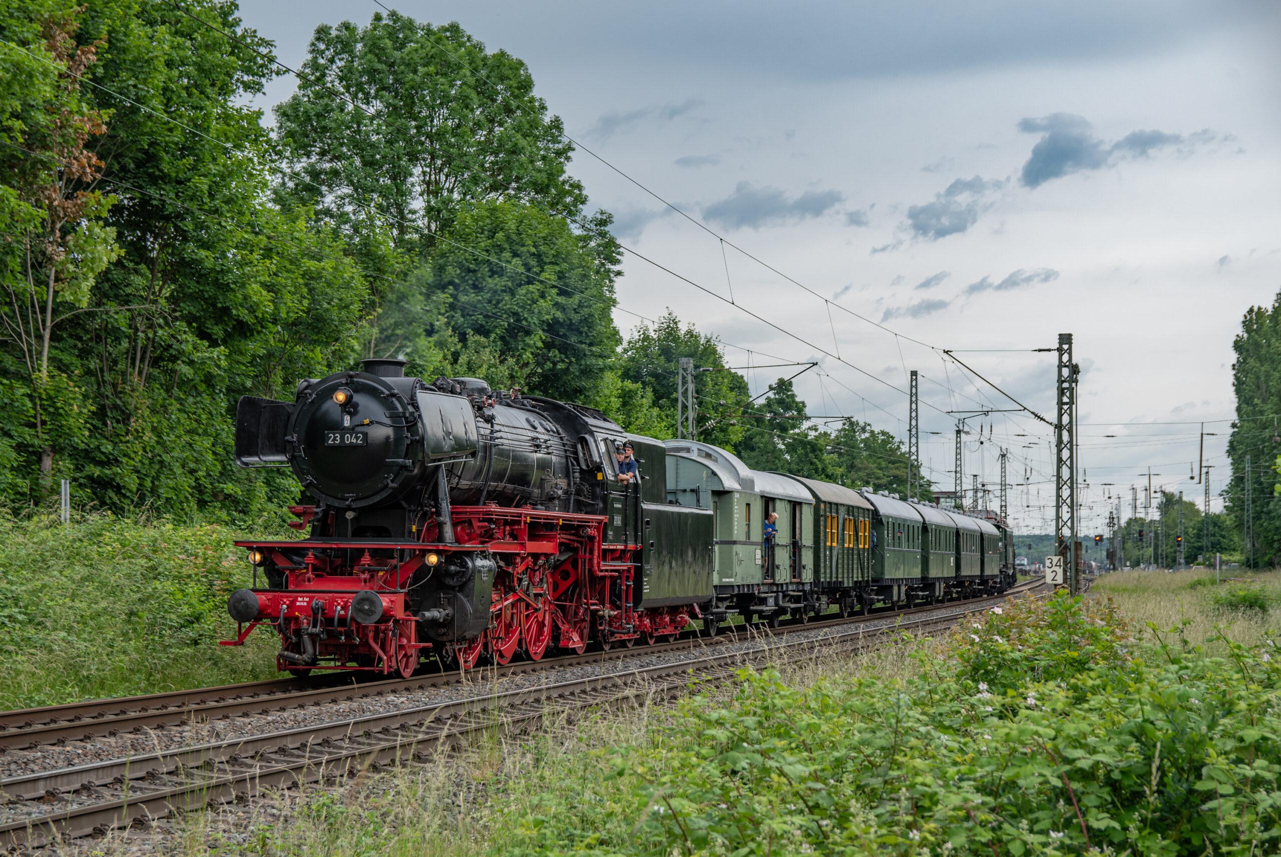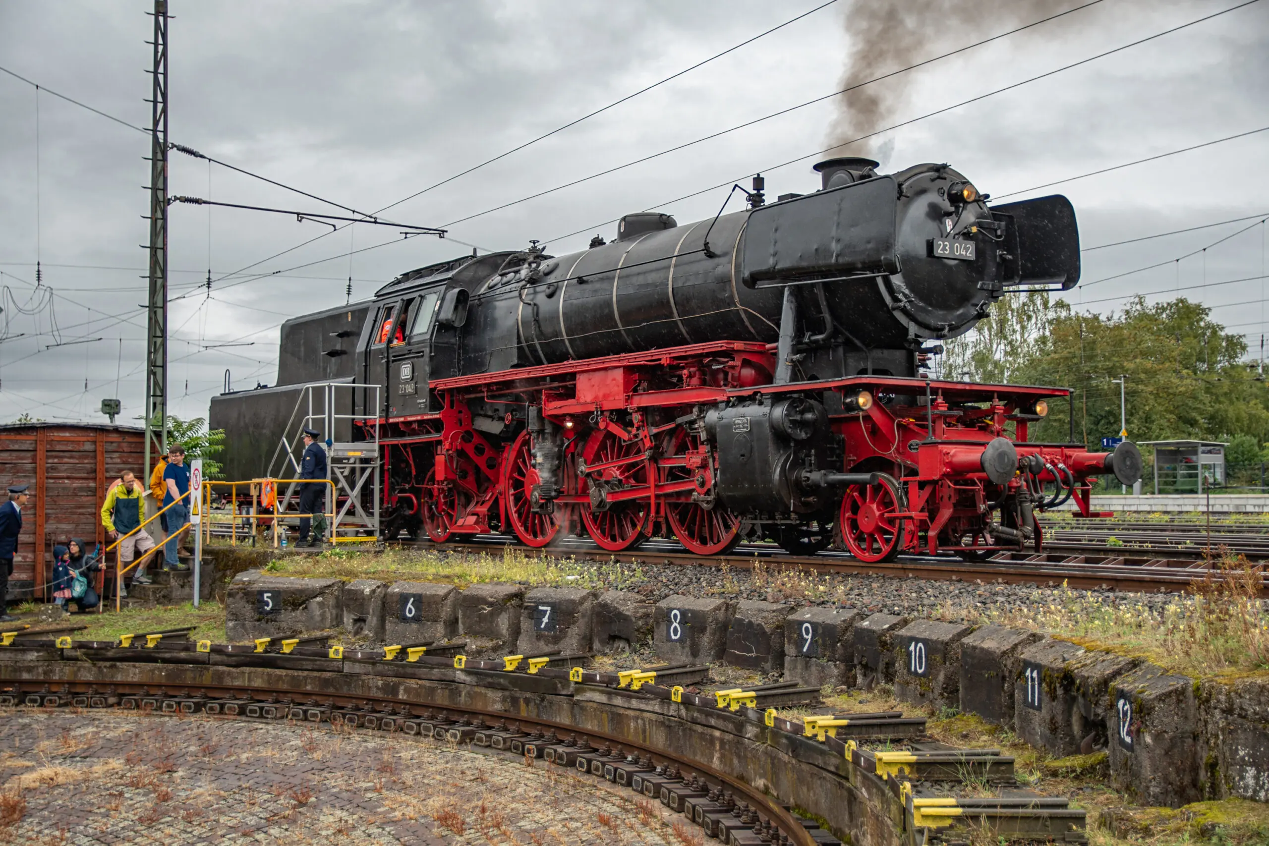 Darüber hinaus beteiligten wir uns auch mit Fahrzeugen und Personal an Veranstaltungen anderer Vereine, unter anderem in Dresden, Hanau, Wiesbaden, im Schwarzwald und auf dem Kuckucksbähnel. Gleichzeitig statteten dem Eisenbahnmuseum diverse interessante Fahrzeuge einen Besuch ab, etwa die 23 058, zwei Vertreterinnen der Baureihe 01.10 und ein Sonderzug aus Treysa. Ganz gemäß dem Motto: „Eisenbahn-verein(t)“.